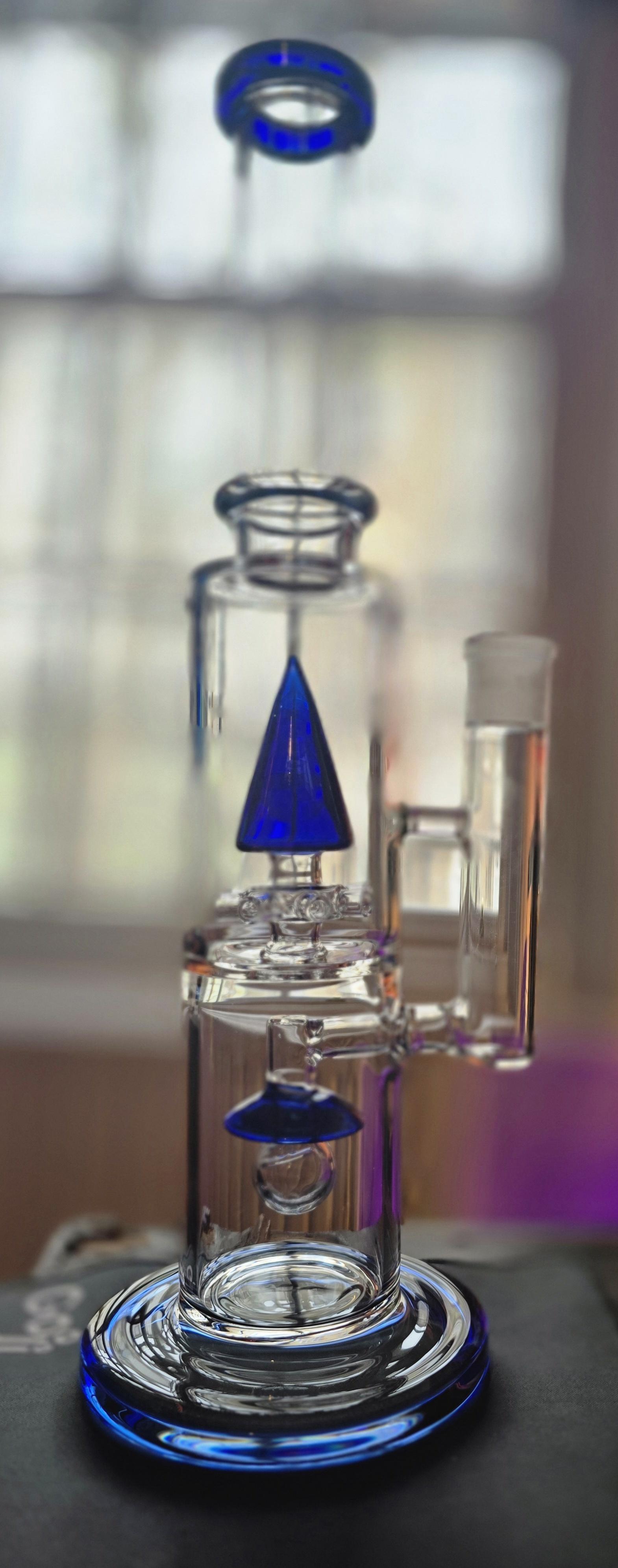 Meet the 40cm Cone Perc Water Pipe — a dual-chamber beast built for those who refuse to settle for anything less than silky-smooth pulls. Available in Cobalt Blue, this piece is as much a statement on your shelf as it is a weapon in your rotation.